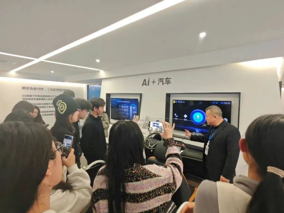 师生们还深入了解了AI在医疗、工业、汽车等领域的跨界融合应用。在医疗场景中,“智医助理”可辅助医生进行诊断,并提供多语种服务支持;在汽车领域,智能座舱的语音交互系统实现了多语种实时对话,显著提升了跨境出行的沟通效率。