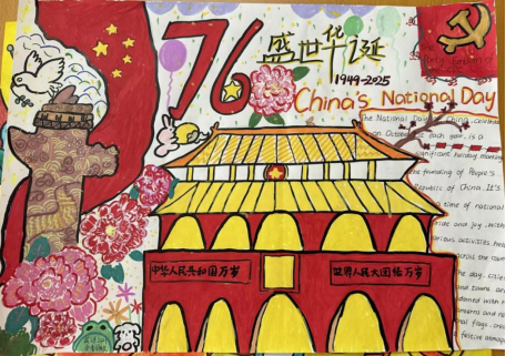 本次活动得到了全院学生的积极响应。同学们围绕“国庆节”“校园党建文化”等主题,倾情创作了一大批优秀作品。无论是何种形式的艺术创作,每一件作品都构思巧妙,制作精良。笔触之间,不仅是对国家繁荣富强的生动描绘,也是同学们对祖国的无限热爱与祝福。更值得一提的是,每一份作品都辅以了英文解说词,同学们运用所学,以规范流畅的语言生动阐释了作品背后的文化内涵,真正践行了“用外语讲好中国故事”的初心。